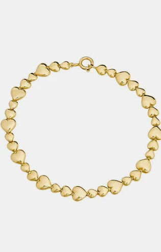 Pulseira Ouro 18k Corações em Ouro 18k (750), com construção firme e acabamento refinado. Modelo versátil para compor com outras joias e relógios. Fecho seguro para uso diário.